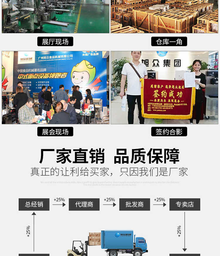 廣州旭眾食品機(jī)械有限公司是一家集科研開(kāi)發(fā),生產(chǎn)設(shè)計(jì),營(yíng)銷(xiāo)服務(wù)為一體的現(xiàn)代化生產(chǎn)企業(yè)?,F(xiàn)代化生產(chǎn)車(chē)間,精湛制造技術(shù),所產(chǎn)機(jī)械歷經(jīng)市場(chǎng)重重考驗(yàn),不斷贏得海內(nèi)外客戶(hù)的贊譽(yù)。