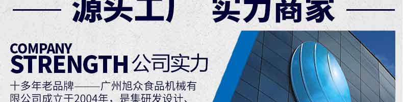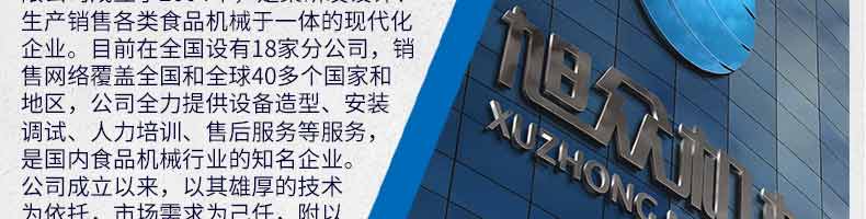 廣州旭眾食品機械有限公司是一家集科研開發(fā),生產(chǎn)設(shè)計,營銷服務(wù)為一體的現(xiàn)代化生產(chǎn)企業(yè)?,F(xiàn)代化生產(chǎn)車間,精湛制造技術(shù),所產(chǎn)機械歷經(jīng)市場重重考驗,不斷贏得海內(nèi)外客戶的贊譽。