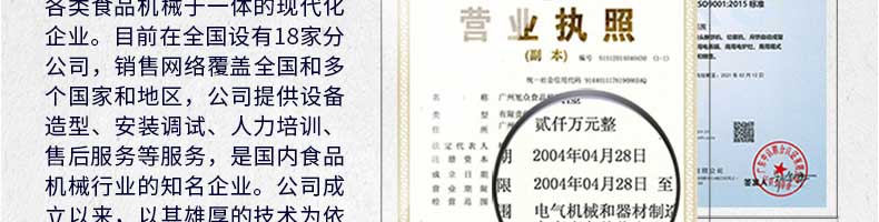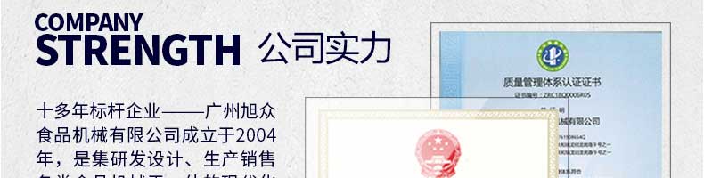 廣州旭眾食品機(jī)械有限公司是一家集科研開(kāi)發(fā),生產(chǎn)設(shè)計(jì),營(yíng)銷(xiāo)服務(wù)為一體的現(xiàn)代化生產(chǎn)企業(yè)。現(xiàn)代化生產(chǎn)車(chē)間,精湛制造技術(shù),所產(chǎn)機(jī)械歷經(jīng)市場(chǎng)重重考驗(yàn),不斷贏得海內(nèi)外客戶的贊譽(yù)。