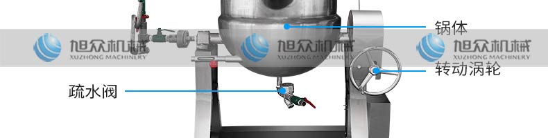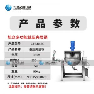 作者:旭眾機械發(fā)布時間:2019-05-15 17:02查看數(shù):您當前的位置:首頁>>產(chǎn)品展示>>油炸機和榨油機系列>>夾層鍋煮鍋