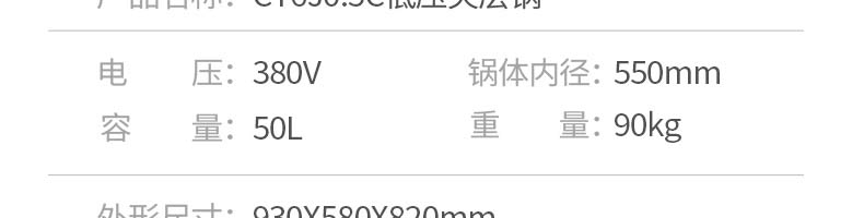 名稱50型夾層鍋 電源380v 功率 產(chǎn)量 尺寸930*580*820mm 重量90kg 規(guī)格 其他
