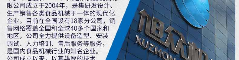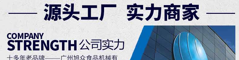 廣州旭眾食品機(jī)械有限公司是一家集科研開發(fā),生產(chǎn)設(shè)計(jì),營銷服務(wù)為一體的現(xiàn)代化生產(chǎn)企業(yè)?,F(xiàn)代化生產(chǎn)車間,精湛制造技術(shù),所產(chǎn)機(jī)械歷經(jīng)市場(chǎng)重重考驗(yàn),不斷贏得海內(nèi)外客戶的贊譽(yù)。