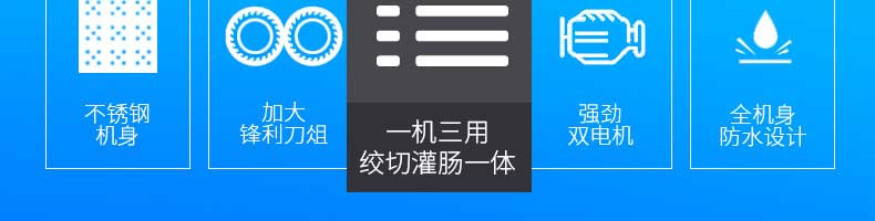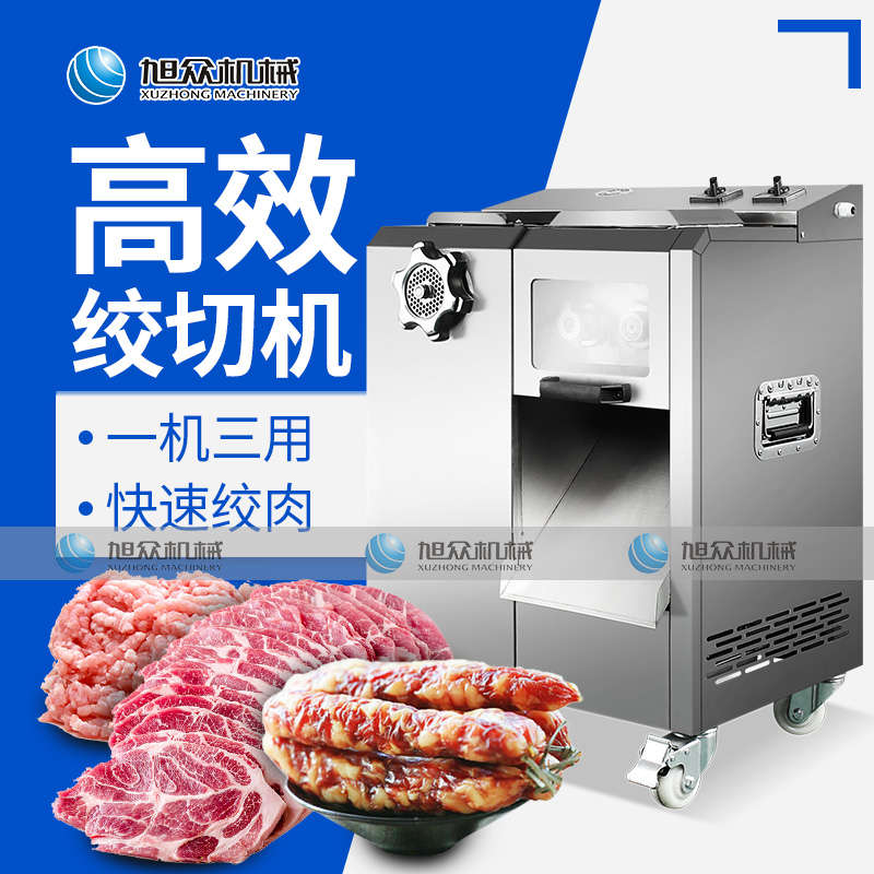 XZ-7絞切機(jī),多功能一體機(jī),切肉絞肉/灌腸/切菜。加厚不銹鋼優(yōu)質(zhì)機(jī)身堅固耐用,不易生銹,安全衛(wèi)生易清洗。