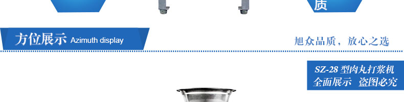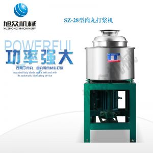 SZ-28型高速肉丸打漿機,高速肉丸打漿機選用不銹鋼,生產(chǎn)過程中改善了肉質(zhì)脂肪纖維,生產(chǎn)出的丸子外表光滑細膩、低脂、口感爽脆、彈性好、韌性好,是潮州肉丸的專用打漿機。