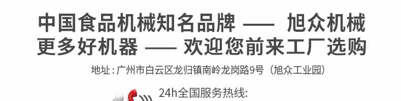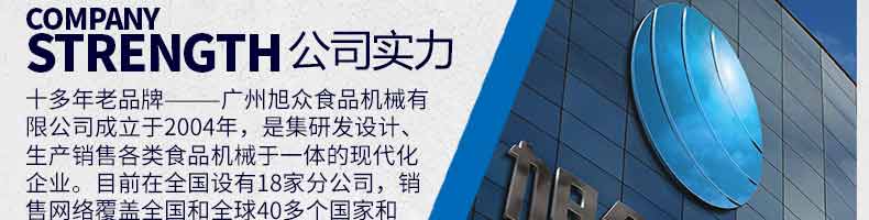廣州旭眾食品機(jī)械有限公司是一家集科研開發(fā),生產(chǎn)設(shè)計(jì),營銷服務(wù)為一體的現(xiàn)代化生產(chǎn)企業(yè)?,F(xiàn)代化生產(chǎn)車間,精湛制造技術(shù),所產(chǎn)機(jī)械歷經(jīng)市場重重考驗(yàn),不斷贏得海內(nèi)外客戶的贊譽(yù)。