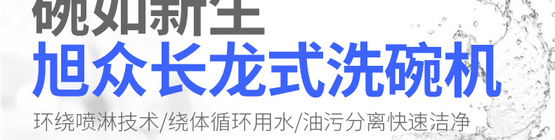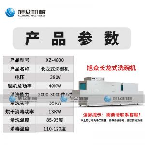 XZ-4800長龍式洗碗機,碗如新生,旭眾長龍式洗碗機。環(huán)繞噴淋技術繞體循環(huán)用水/油污分離快速潔凈。食品級304不銹鋼堅固耐用,耐高溫抗腐蝕,易于清洗,安全有保障。