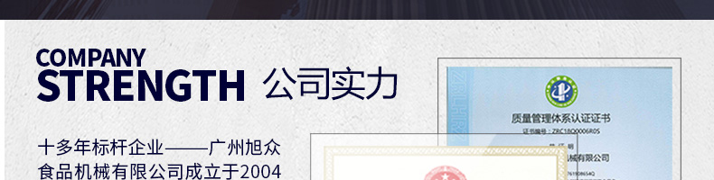 廣州旭眾食品機械有限公司是一家集科研開發(fā),生產(chǎn)設計,營銷服務為一體的現(xiàn)代化生產(chǎn)企業(yè)。現(xiàn)代化生產(chǎn)車間,精湛制造技術,所產(chǎn)機械歷經(jīng)市場重重考驗,不斷贏得海內外客戶的贊譽。